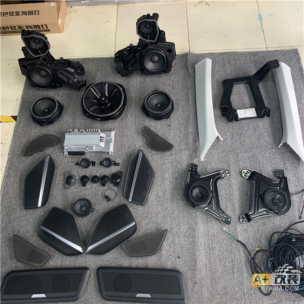奥迪A8 D5 升级原厂B&O音响系统满满登登的配件全部原装位置安装,原车低音音响,都说是纸糊的,后备箱环绕音响,原车自带低音炮, 环绕音响在低音炮两侧BO低音安装上车,俩后备箱炮对比一下,后排触控调节音分频 ,当然前排也是可以控制的